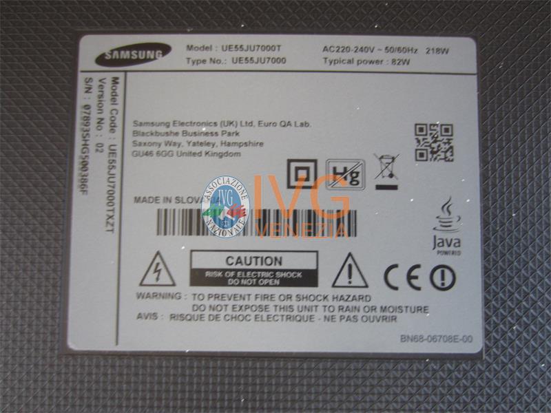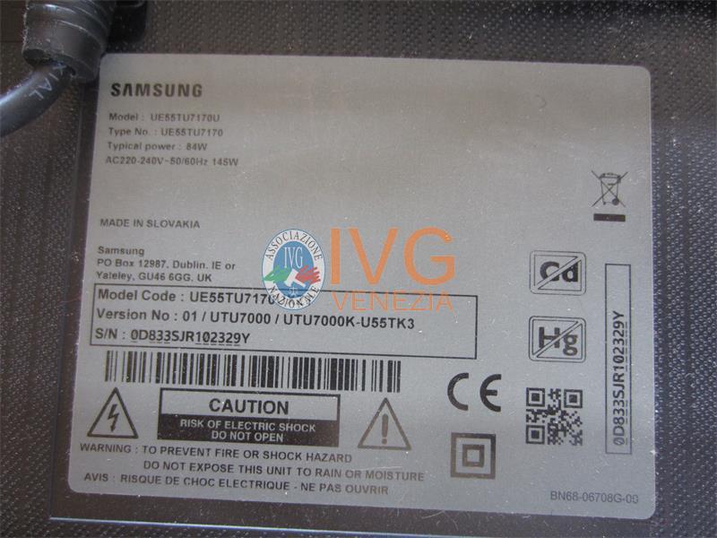 22/25-1- 01 TV color Samsung mod. UE55JU7000T S/N 07893SHG500386F, 01 TV color Samsung mod. UE55TU7170UXZT con 01 telecomando01 affettatrice elettrica in acciaio s.m.a,01 stampante Epson WiorkForcepro WC-C5790