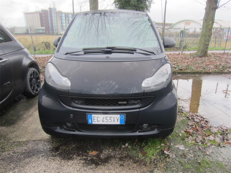 01 autovettura Smart Fortwo Coupe Brabus Xclusive Targata EG453XV, telaio WME4513331K413776, Imm. 31.03.2011, Cilindrata 1995cc, Kw 135,00, Alimentazione benzina,Km. indicati 32927, pneumatici al 50%, cerchi in lega, carrozzeria in scadenti condizioni con decadimento della verniciatura, interni in buone condizioni, con carta di circolazione, sprovvisto di CDP, e munita 02 chiavi d’avviamento, Classe ambientale 715/2007-692/2008 Euro 5A, note Auto marciante