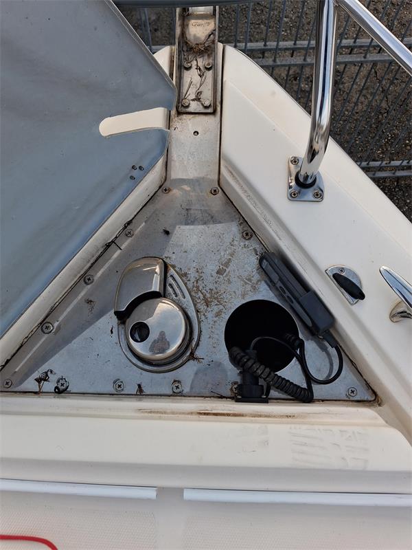 01 natante Eolo 830 Day provvisto di motore entrofuoribordo motore Mercruiser 6.2 lt 350 Hp, Ore moto non conosciute, Condizioni scafo: Ottime condizioni opera morta e opera viva, Condizioni interni: Dinette, cucinette in ottimo stato, Accessori plancia: VHF Icom IC-M330- Chartplotter Raymarine, Sprovvisto di documenti e di certificato di potenza del motore, Con chiave d’avviamento, note Mancanza del piede e delle eliche, mancanza batterie.