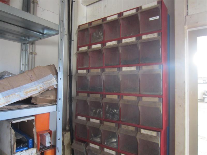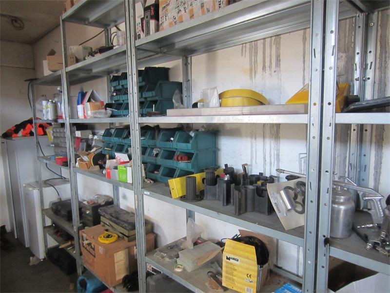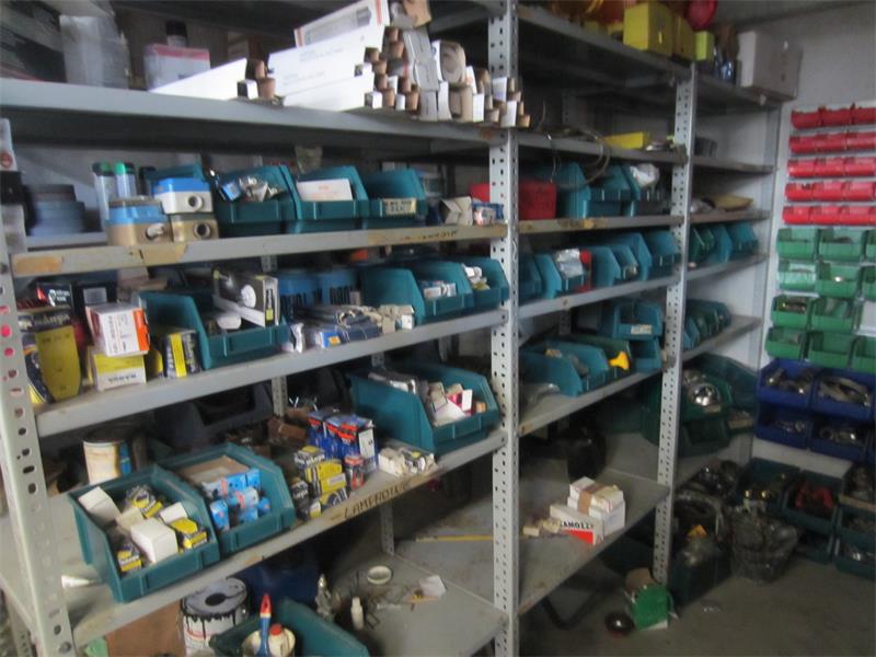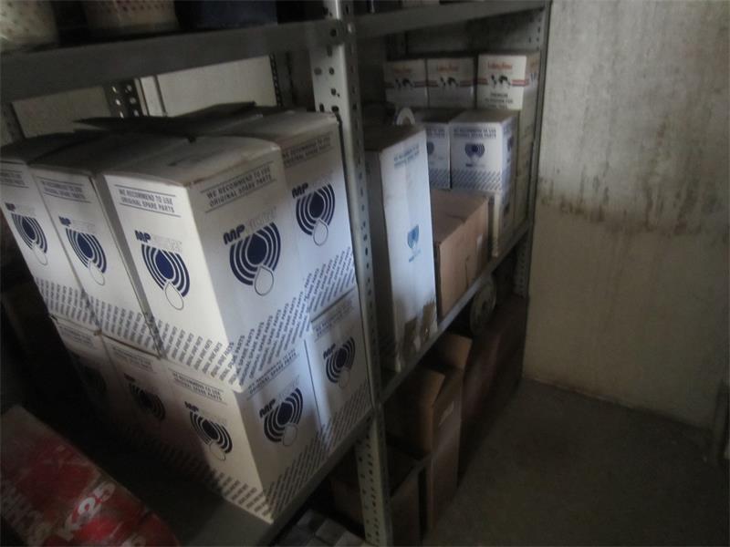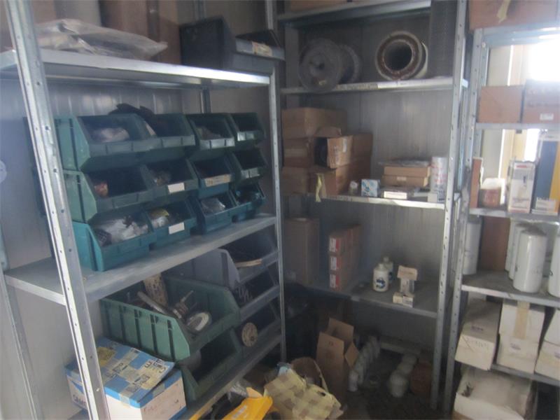 28/25-23- officina ricambi filtri-olio- cinghie, scaffalatura leggera ca. 20,00 mt, (sottosoppalco) ufficio ricambistica per utensili (punte, scalpelli, fascette per idraulica, lampadine, neon..), scaffalatura ca. 15,00 mt, 01 mototroncatrice HVA 3120K, arredo e attrezzatura varia officina