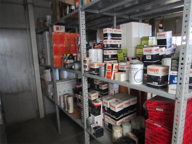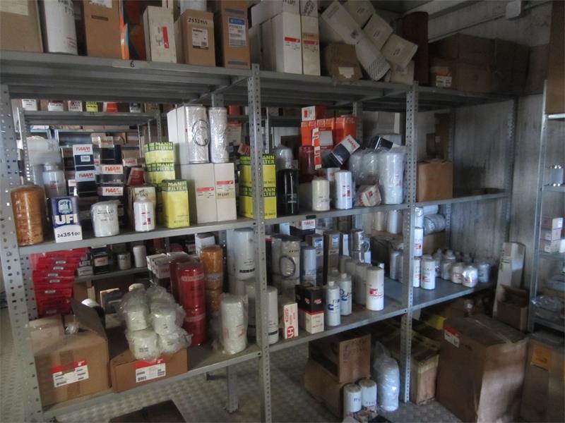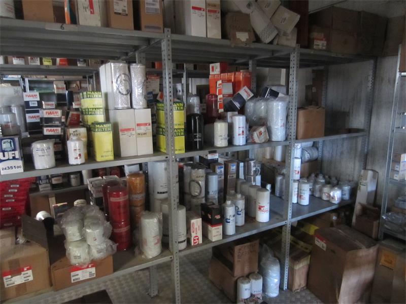 28/25-23- officina ricambi filtri-olio- cinghie, scaffalatura leggera ca. 20,00 mt,