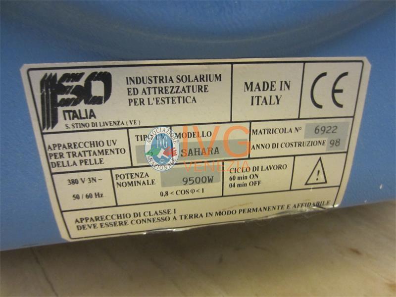 38/25- 01 solarium verticale modello SAHARA, matr. 6922, fabbrica ISO Italia di San Stino di livenza,01 solarium a poltrona mod LUCCIOLOVE matr 6964, fabbrica ISO Italia di San Stino di Livenza