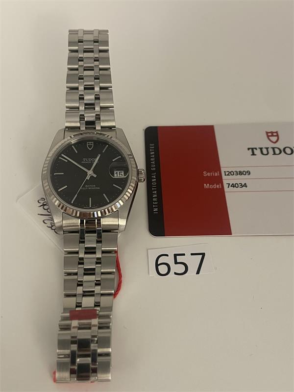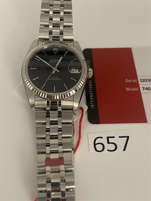 11/2021 - 657 - 01 OROLOGIO TUDOR PRINCE DATE Marca: TUDOR Modello: PRINCE DATE Referenza: 74034 Nr. Seriale: I 203809 Nr. Fondello: 8030 Nr. Serie Movimento: Materiale: acciaio Calibro: 2824-2 ETA Diametro: 34mm Tipo Cinturino: Nr. Cinturino: SH 62470 628 Materiale cinturino: acciaio Certificato: certificato di garanzia Svizzera privo di data VISIONE DEI BENI IL 05.12.2025 PREVIA PRENOTAZIONE E INVIO DI C.I