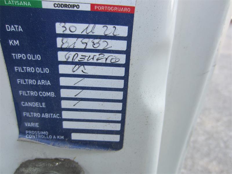 42/2025- Autocarro Fiat Doblò targato FF1.... telaio ZFA26300006C2.... Anno 1° immatricolazione 08.07.2016, cilindrata 1248,00cc, Kw 66,00, alimentazione gasolio, ortata 705 Kg, km segnati 38.160, pneumatici da sostituire,Interni in mediocri condizioni generali, cambio manuale 5 marce, A/C, 2 finestrini elettrici, Carrozzeria in discrete condizioni generali, retrosensori di parcheggio, con piccole ammaccature su portiera DX e parte anteriore SX, con bagagliera,con carta di circolazione, sprovvisto di CDP e con 01 chiave,Revisione scaduta 11/2024,Classe ambientale 195/2013 Euro 5B
