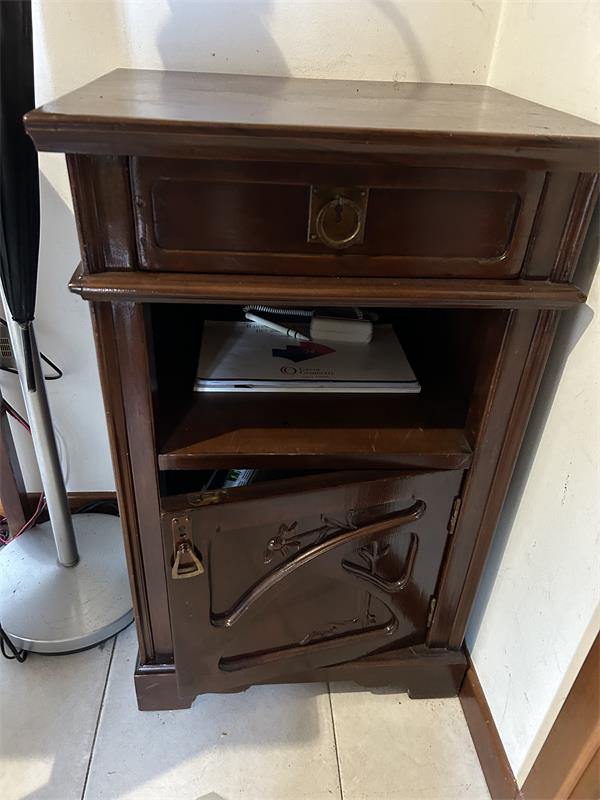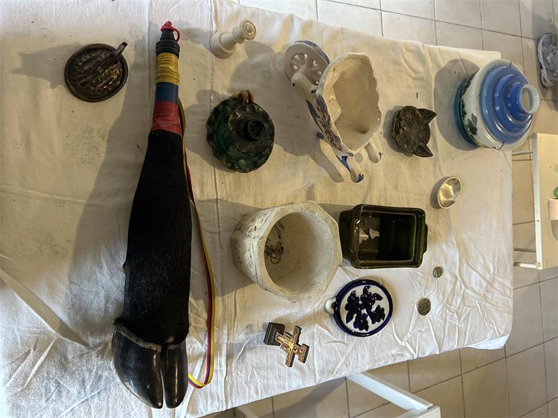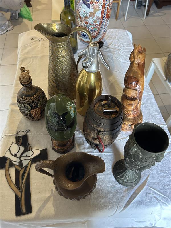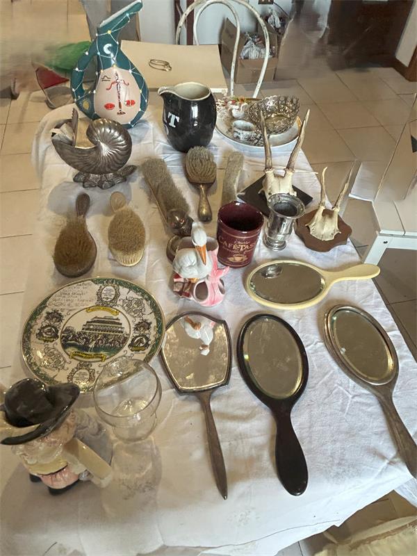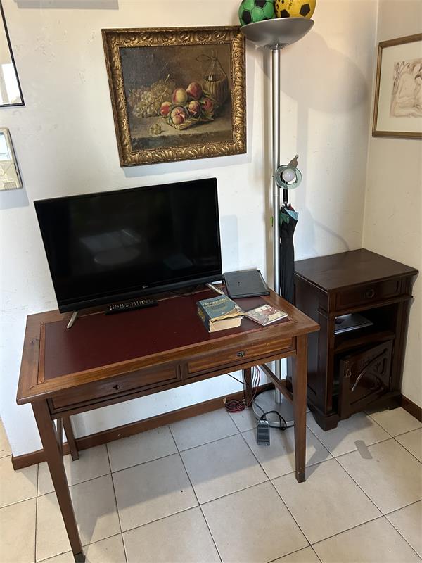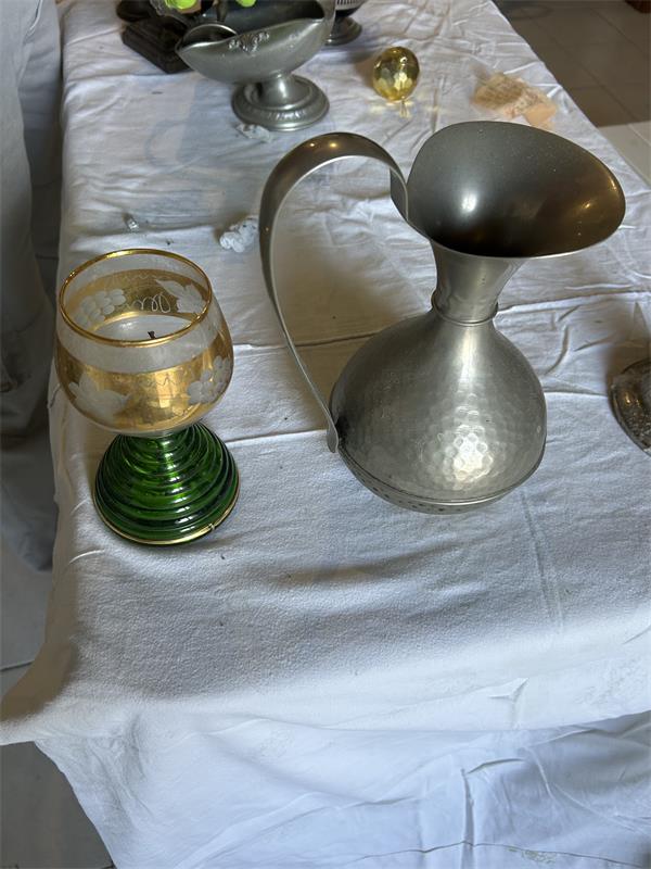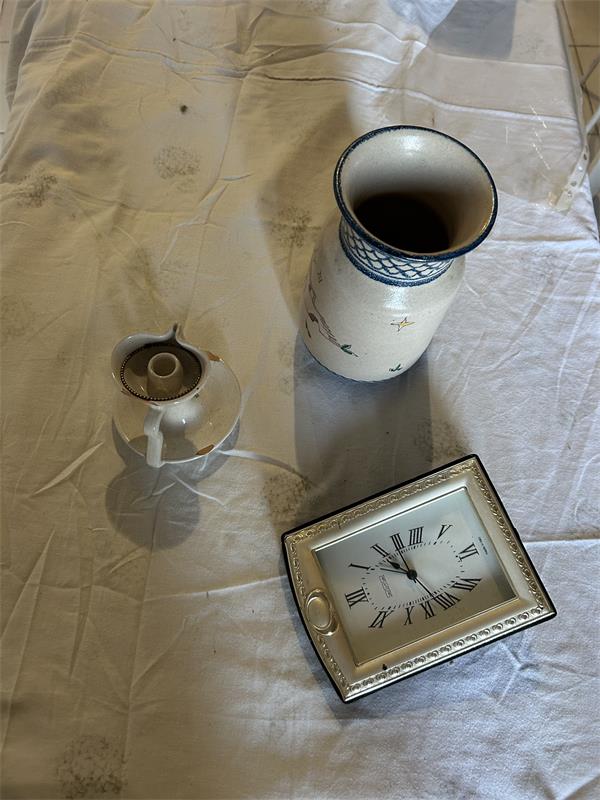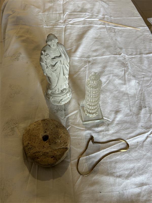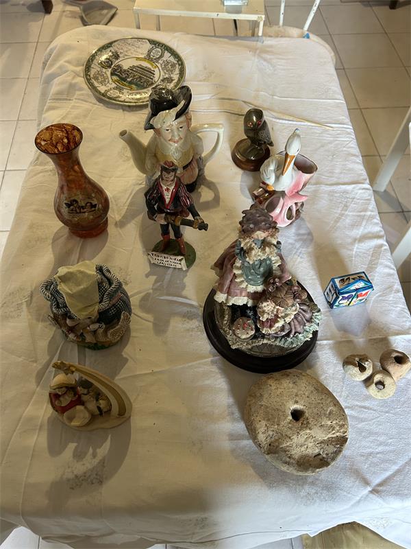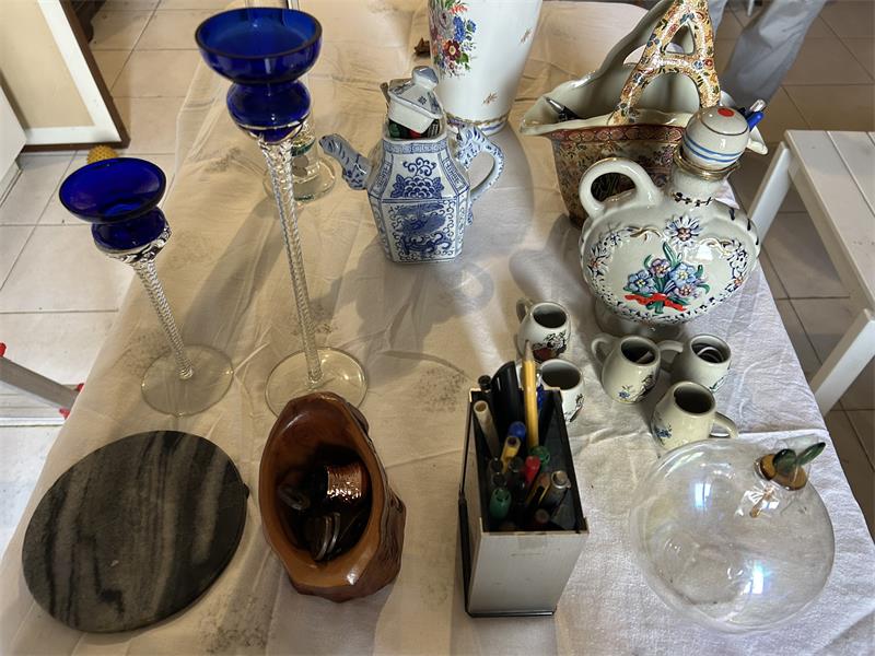11/25-1- 01 panchina metallica con evidenti segni di scrostamenti ed ossidazione, 01 lampada a piantana, 01 specchio con cornice in legno (vetro rotto), 04 bamboline, 02 calici in peltro, 01 brocca in peltro, 01 centro tavola in peltro, 01 vecchio ferro da stiro in ferro, 01 campanella in ottone, 01 zuccheriera in metallo, 01 piccola coppa in metallo e vetro color blu, 01 brocca in peltro, 01 vasetto in vetro base color verde, 01 candelabro a 3 posti in metallo, 01 pentola in rame, 01 campana in ottone, 01 portafiori in vetro, 01 bottiglia in vetro, 02 anfore in ottone con incisioni a motivi floreali, 03 pupazzi, 06 oggetti ornamentali varie dimensioni, forma e materiali, 12 oggetti /suppellettili vari varie dimensioni e materiali, 10 oggetti/ suppellettili vari varie dimensioni e materiali, 01 piatto centrotavola, 01 piccolo vaso in vetro color verde, 02 brocche, 01 piccola icona sacra in legno, 01 vaso in porcellana decorazioni orientali colore prevalente rosso, 05 piccole cornici, 02 suppellettili in vetro, 02 piccole statuine femminili, 01 piatto centrotavola circolare in metallo cesellato, 01 orologio da tavolo, 01 svuotatasche in metallo, 01 stappabottiglie a forma di delfino, 01 tazza porta penne, 01 porta oggetti a forma di pentola, porta olio/aceto sprovvisto di relative bottiglie, 02 candelabri in vetro, 02 caraffe in porcellana, 05 tazzine, 01 vaso con disegni a motivi floreali, 01 mobile porta TV in legno a 2 cassetti in pessime condizioni, 01 vaso in porcellana colore nero e motivi stilizzati vari colori “Decor Exclusiv”, 01 statuina raffigurante angelo, 01 oggetto in vetro, 01 vecchia macchina da scrivere Olivetti Lettera 22, 01 piatto da muro in peltro, 01 piatto da muro in legno raffigurante opera sacra, 01 sedia in legno lavorato, 01 scrittoio in legno con piano in pelle e 2 cassettini, 01 TV color Telesystem con telecomando, 01 mobiletto in legno con 1 anta, 1 cassetto e 1 vano a giorno, 01 porta tovaglioli in argento 800, 01 piatto centrotavola con incisioni, 01 centrotavola in cristallo, 05 bamboline, 03 racchette da tennis, 01 deambulatore Fixed Walker, 01 stampella, 01 bastone da passeggio per anziani, 01 abat-jour in vetro e paralume in tessuto, 05 oggetti ornamentali, 01 piccolo orologio da tavolo, 01 vaso porta fiori, 01 piccolo brick con piattino, 02 valigette tipo 24 ore, 01 vaso porta fiori, 01 cassettina porta oggetti in legno radicato “Savinelli”, 01 scatola contenente pedine per scacchi con rappresentazioni personaggi medioevali, 03 attrezzi agricoli, 01 vaso in porcellana con disegno raffigurante coppia sotto un albero, 02 caraffe, 01 bottiglia in vetro con tappo, 01 zuccheriera e 01 lattiera, 01 piccolo calice in vetro, 01 soprammobile, 01 modem Home & life, 01 cordless, 01 Tablet, 02 vecchi smartphone, 01 vaso in vetro colore bianco e particolari verdi, 03 soprammobili vario materiale, 01 catenina in metallo color dorato, 01 piccolo vaso cinese, 12 piccoli oggetti ornamentali quali statuine, piattini, soprammobili varie forme, dimensioni e materiale, Piccoli oggetti decorativi in metallo, 04 specchi con manico, 04 spazzole, 01 piattino da muro, 11 oggetti ornamentali vario materiale, forma e dimensione, 01 libreria in legno vari ripiani di produzione artigianale, 01 cucina lineare molto usurata color bianco con piano cottura a 4 fuochi, lavello a 2 vasche, frigorifero, forno e base con 4, cassetti, 3 ante, scolapiatti a 2 ante, cappa e pensile a 1 anta, nonché posateria, padelle e tegami vari usati, 01 letto matrimoniale con 2 comodini a 2 cassetti cad. e un armadio a 6 ante in laminato, 01 lampada metallica, 01 tavolino in legno color bianco, 01 lavatrice Zoppas mod. Perfecta 600 giri classe A, 01 valigia con ruote, 02 zaini, 01 pouf in similpelle color nero usurato e con rotture, 01 vaso in vetro bianco con bordi neri.