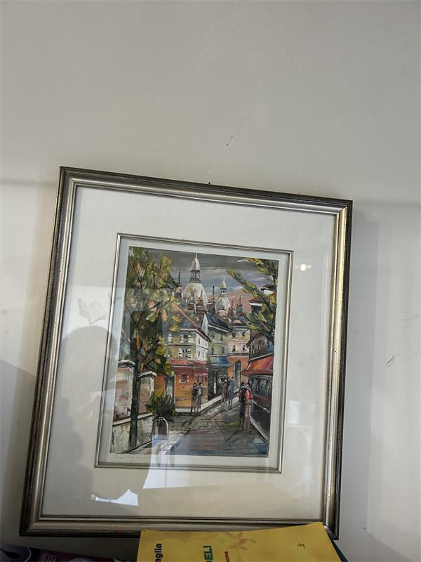 11/25-2- 01 stampa raffigurante Santa Barbara, 01 quadro con cornice in legno raffigurante uomo su una panchina, 01 quadro con cornice in legno raffigurante natura morta, 01 stampa con cornice raffigurante bambina con cane, 01 acquerello con cornice in legno raffigurante coppia, 01 quadro con cornice in legno raffigurante persone in campagna, 01 tela raffigurante paesaggio marino e 2 barche, 01 tela raffigurante paesaggio innevato, 01 quadro raffigurante la Tour Eiffel, 01 quadro a tempera raffigurante case sul canale e barche a firma Ciro Esposito 2011, 01 quadro a tempera raffigurante barche a firma Ciro Esposito 2011, 01 quadro raffigurante barca con persone, 01 quadro con cornice raffigurante donna in preghiera, 01 litografia raffigurante volto di donna a firma Seibezzi, 01 quadro con cornice china scolorita raffigurante scorcio di paese, 01 quadro con cornice carboncino raffigurante Charlie Chaplin con cane a firma Dal Cin 77, 01 quadro con cornice carboncino raffigurante Charlie Chaplin con violino a firma Dal Cin 77, 01 quadro con cornice in legno raffigurante torre su giardino, 01 litografia con cornice raffigurante donna, 01 stampa con cornice raffigurante la città di Vicenza, 01 litografia con cornice in legno raffigurante campo di papaveri sul campo firma illeggibile, 01 stampa con cornice in legno raffigurante bambina con cesto di fiori sulla riva del fiume, 201 stampa con cornice in legno raffigurante bambino con canna da pesca sulla riva del fiume, 01 quadro con cornice in legno matita raffigurante volto femminile, 01 stampa con cornice in legno raffigurante persone con chiesa sullo sfondo con scritta “Scwalinger milchmadl um 1820”, 01 stampa con cornice in legno raffigurante persone, con scritta “Munchner Bierbrauer um 1800”, 01 quadro con cornice in legno raffigurante scorcio di città e persone, 01 ricamo su tela con cornice in legno decorato raffigurante natura morta, 01 litografia con cornice in legno lavorato raffigurante lottatori a firma Malvisi, 01 stampa con cornice in legno raffigurante donna, con scritta “l’art et la mode”, 01 litografia con cornice in legno raffigurante disegno astratto, 01 quadro ad olio con cornice in legno raffigurante paesaggio, 01 quadro con cornice in legno lavorato raffigurante volto stilizzato a firma G. Zane, 01 pannello in legno inciso Madonna con bambino, 01 quadro con cornice in legno con centrotavola ricamato.